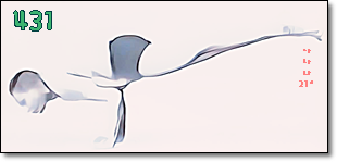 - 숨을 내쉬며, 바닥에서 머리를 떼고 몸통을 든다. 왼쪽 다리는 곧은 상태이고 바닥과 수평이다. 팔꿈치는 구부려지고, 양팔의 상부는 바닥과 평행이고, 손목에서 팔꿈치까지의 팔뚝은 바닥과 수직이다(그림 431).