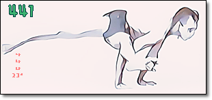 - 왼쪽 다리를 곧게 옆으로 펴고 오른쪽 다리는 뒤고 편다(그림 440). 숨을 두 번 쉰다.
